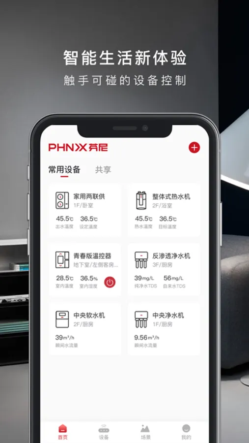 芬尼健康家APP可以通过授权的方式,让您家里多位家庭成员共同管理家里的芬尼产品。并且芬尼健康家APP也支持多住宅的管理方式,一个APP就可以管理多个住宅的所有芬尼设备。