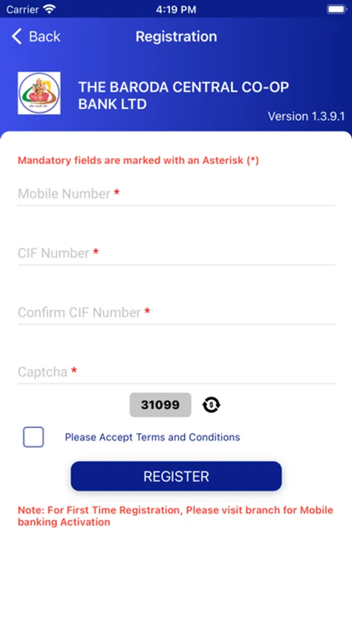 Register using your CIF and mobile number. The app will then be securely linked to your account.