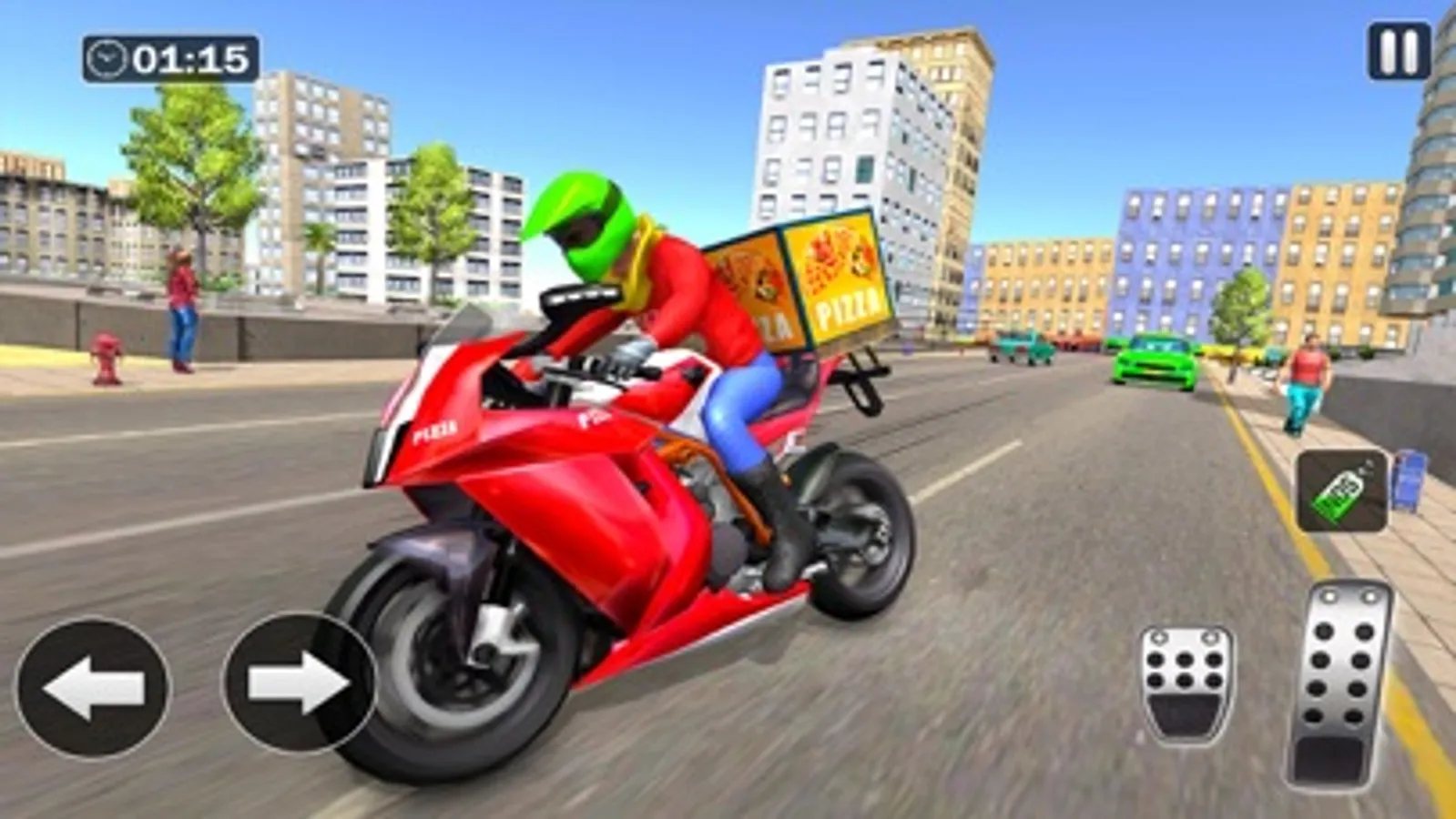 Sit on motorbike and classic scooter and enjoy best pizza delivery game ever.