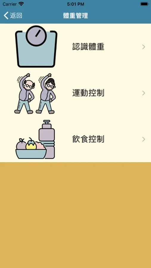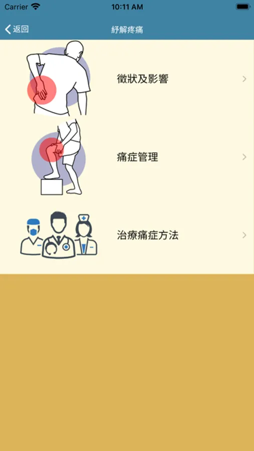 • 健康教育資訊(運動教學、體重管理、健康飲食、關節保護、紓解疼痛、靜觀訓練)