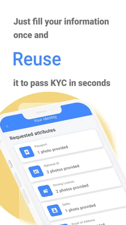 Eliminate the stress of proving your identity all over again. Access your profile anywhere, any time. And share your verified credentials with any Blockpass enabled financial service in seconds.