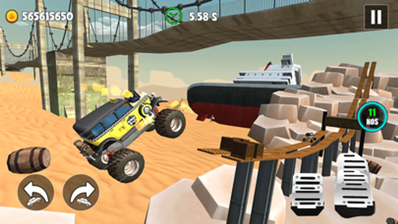 Face the challenges of unique hill climb racing environments with monster truck games and car games. Play and improve your driving skills off road with different monster truck driving. Monster truck racing game shows your style with a range of custom trucks and cars. Race your way through 3d truck simulator and complete the race with the most stunning truck of your choice.