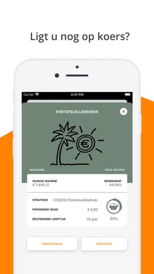 U kunt de waarde van uw beleggingsrekening inzien en de haalbaarheid van uw beleggingsdoelstelling monitoren. Deze app is ontwikkeld voor uw iOS-telefoon en -tablet.