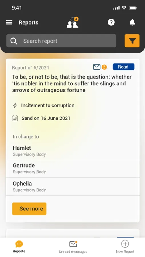 Before submitting a report, please carefully read the Whistleblowing Policy and the Privacy Policy available in the App in the area dedicated to your Organization.