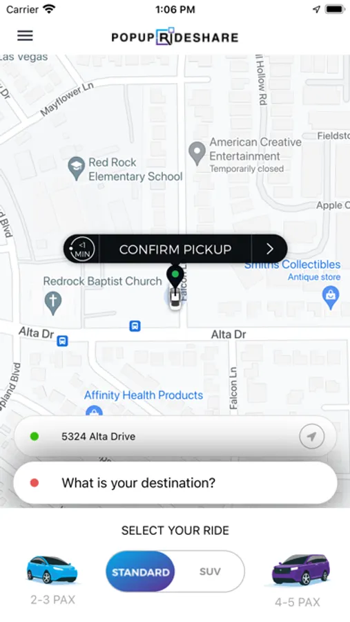 With Popup Rideshare, you can see your price estimate up front before booking. That means you’ll always have an idea of what you’ll pay before requesting your ride.