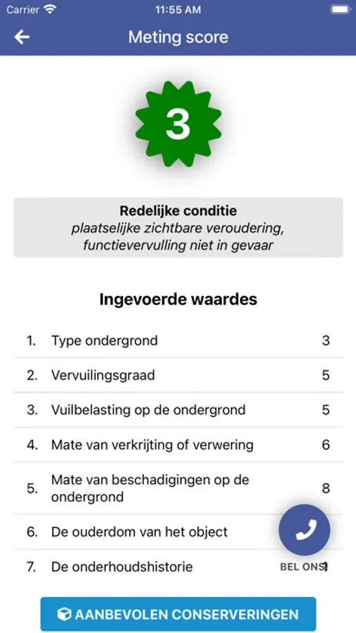 Met de CCPI Conditiescore App is het eenvoudig om de technische staat van een gesloten ondergrond te categoriseren a.d.h.v. het CCPI Conditiescore Systeem. Gevelonderhoud-, bouw,- en schoonmaakbedrijven kunnen hierdoor snel en efficiënt een onderbouwd advies krijgen welk beschermsysteem het beste geschikt is voor de desbetreffende ondergrond. Het CCPI Conditiescore Systeem bestaat uit een unieke formule met 8 verschillende variabelen. Het is mogelijk om de formule zelf in te vullen incl. bijbehorende foto’s. Aan het einde wordt de conditiescore (1-5) berekend en volgt een advies.
