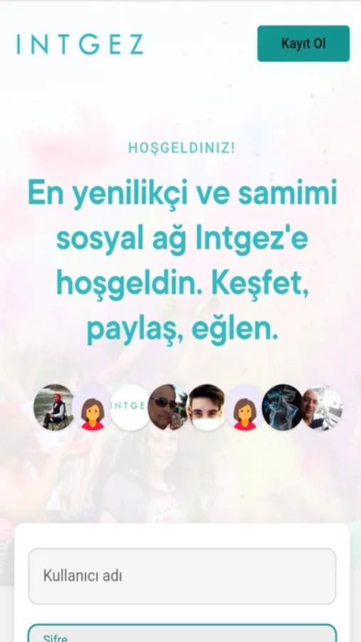 En yenilikçi ve içten sosyal ağ Intgez'e hoşgeldin. Keşfet, paylaş, eğlen...