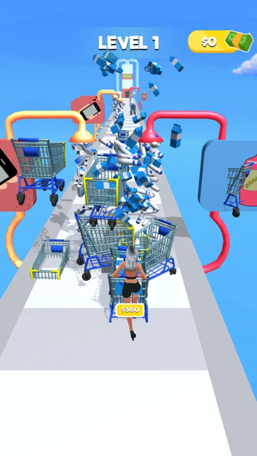 Collect shopping carts to gather valuable resources and sell them at the end.