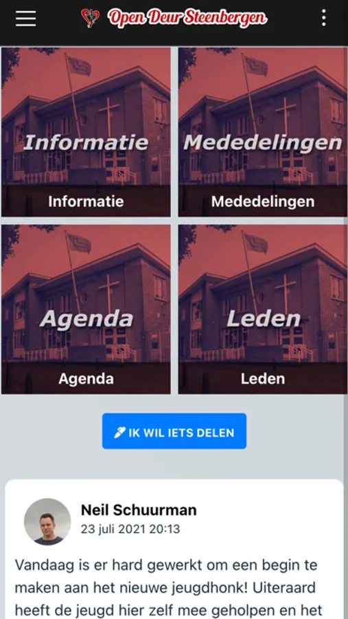 Persoonlijke kerkomgeving voor leden van Open Deur Steenbergen. Met deze app kunnen gemeenteleden berichten met elkaar delen en hun persoonlijke gegevens aanpassen. Ben je ingedeeld in een groep of bediening, dan kan je gegevens uitwisselen in een groepsomgeving.