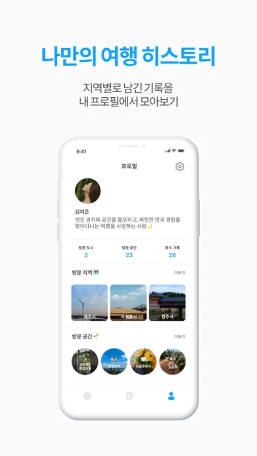 -방문했던 공간을 기록하고, 지역 별로 쉽게 모아볼 수 있어요.