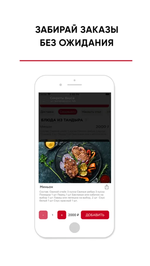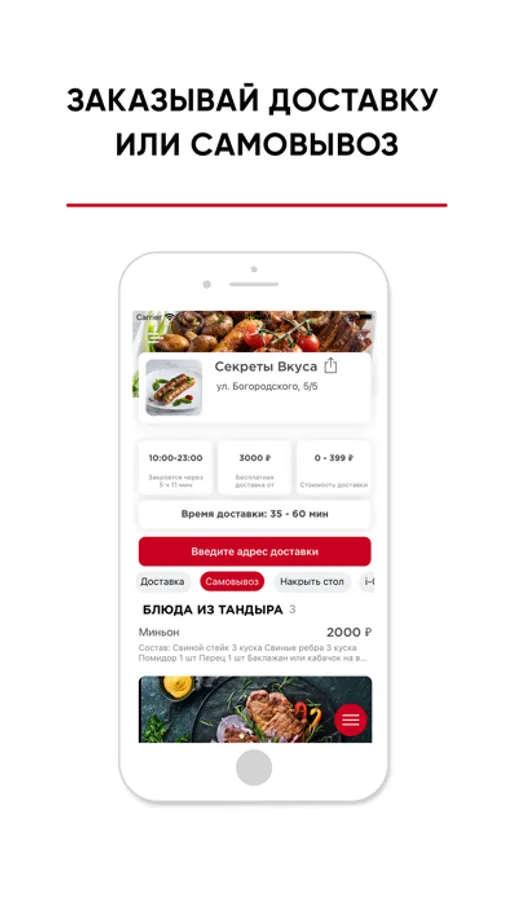 Заказывайте доставку отменных мясных блюд в нашем приложении или забирайте сами. Укажите время готовности, и мы приготовим всё точно к этому моменту.