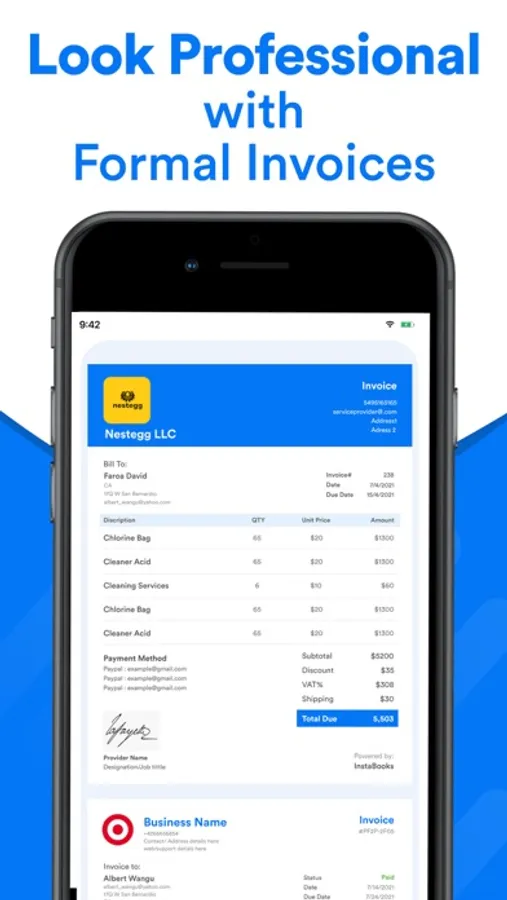 InstaBooks makes you look more professional. With its countless features, you will find everything to optimize your business and fulfill your customer needs. InstaBooks help you generate and send highly professional Estimates and Invoices encompassing your official logo, business title, and other important business information.
