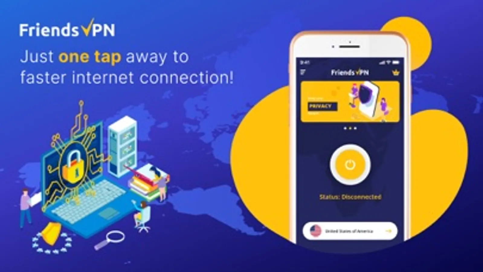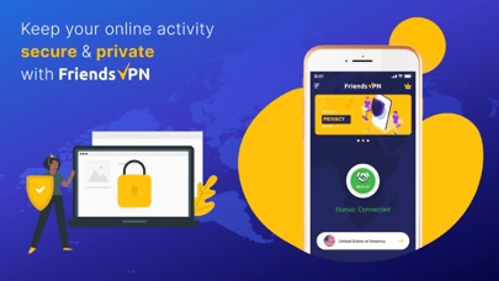 Keep your online internet activity secure and private by using our free FriendsVPN app.