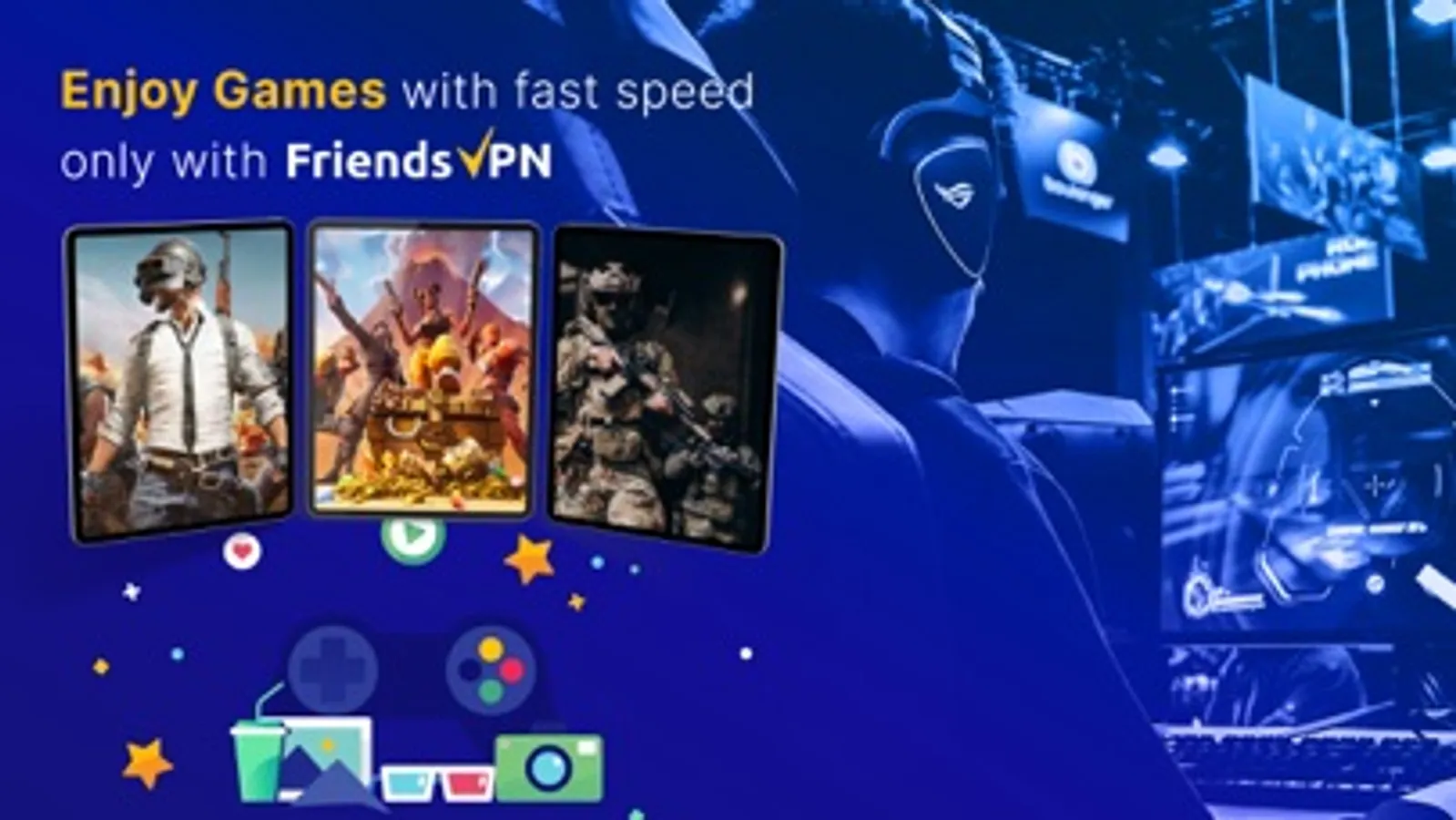 FriendsVPN offers a fast and reliable connection. Your browsing, downloading, streaming, and gaming will always be ultra-fast with unlimited bandwidth