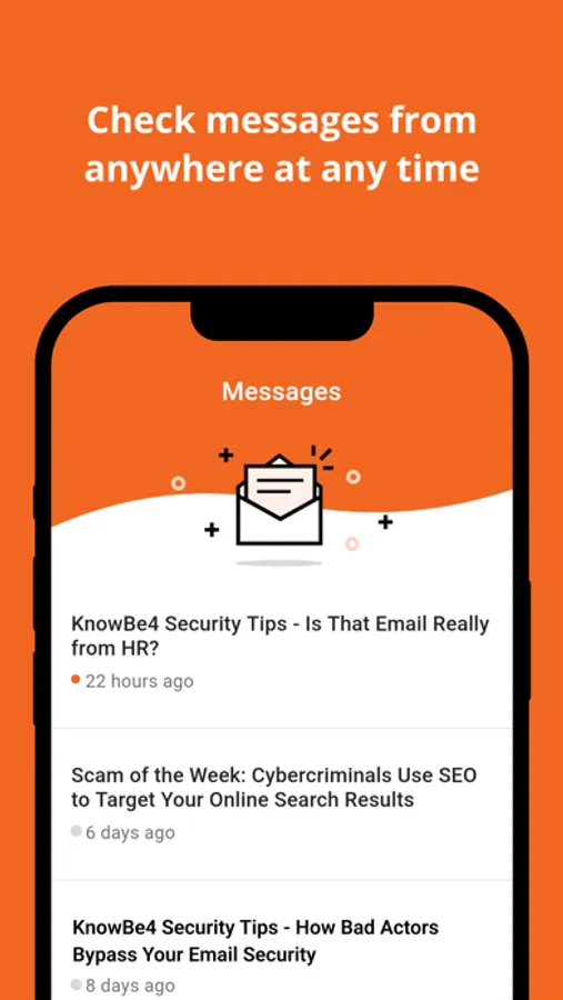 The KnowBe4 app makes it easy for learners to stay on top of user messages such as custom announcements, and KnowBe4 newsletters like the Scam of the Week and Security Hints and Tip.