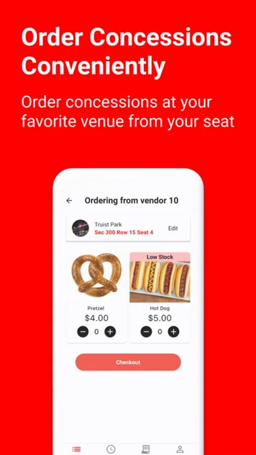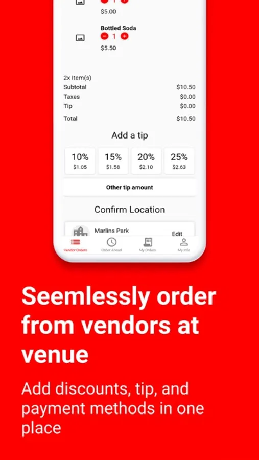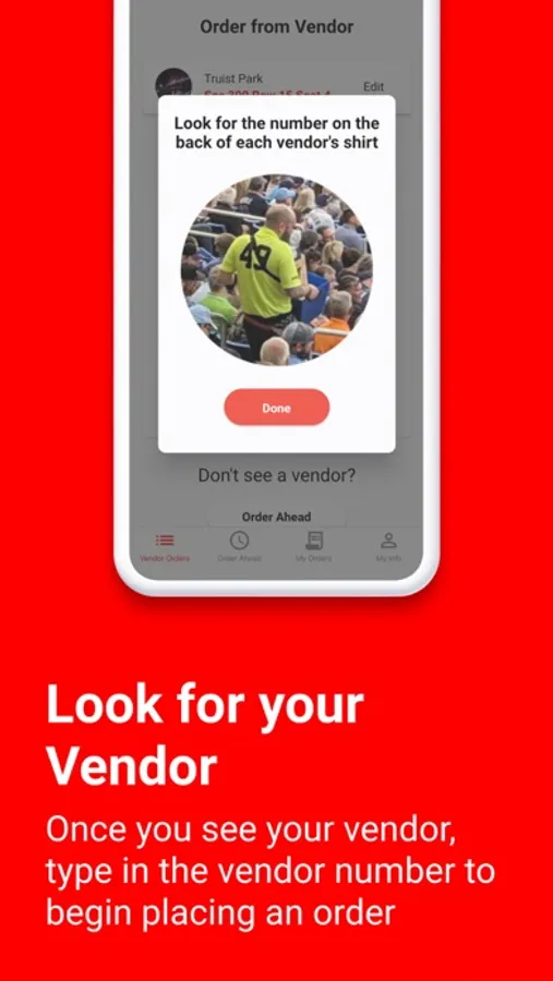 Order your favorite food and beverages from mobile vendors ("hawkers", "beer man", etc.) at stadiums, arenas, racetracks, amphitheaters, and festivals. Order through the app or from the mobile vendor directly. See what various vendors are carrying and make an order from them without having to wave them down. Ordering is simple, safe, and secure. Do not wait in line, have the mobile vendor come to you and deliver hot food or a cold beverage.