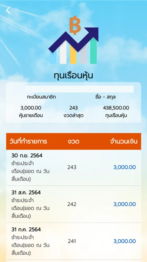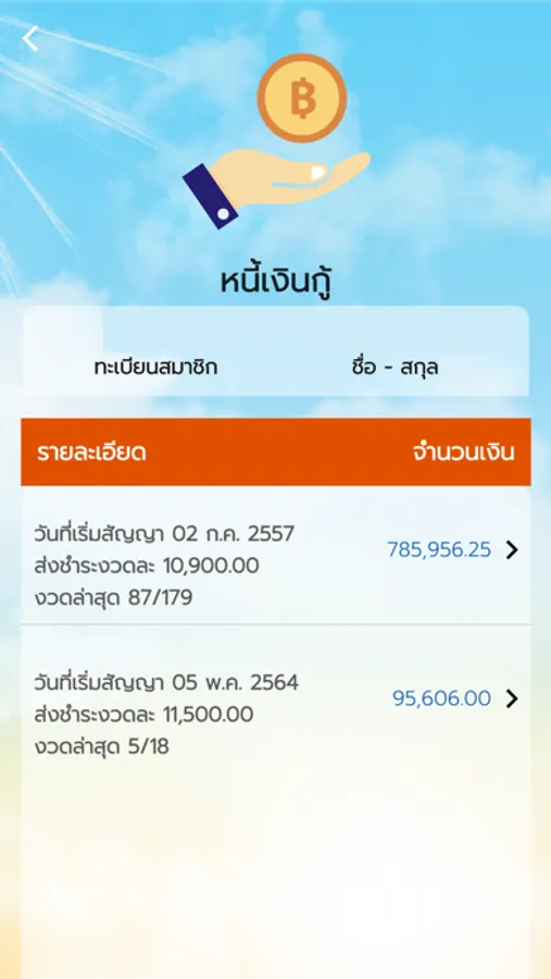 - ยอดคงเหลือสินเชื่อ และรายการเคลื่อนไหวของบัญชี