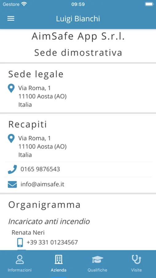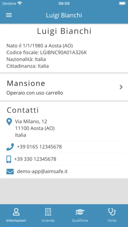Accedi ai dati memorizzati dal tuo datore di lavoro nel gestionale AimSafe e relativi a: