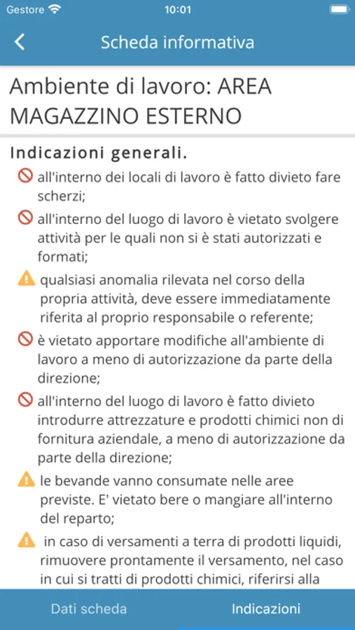 - situazione DPI (Dispositivi di Protezione Individuale)