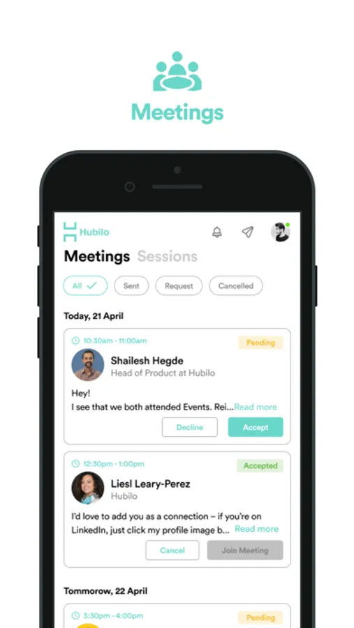 2) Set up meetings with potential attendees (investors, mentors, industry professionals) by using the chat feature.