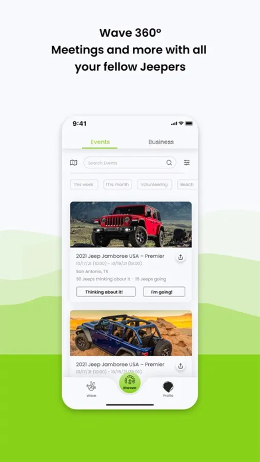 Wave 360° was built with the concept of bringing jeep enthusiasts from all over the country together. By having your community close to you and being able to reach them at your convenience you can be part of the new jeep experience. With Wave 360° you will be able to do that and so much more.