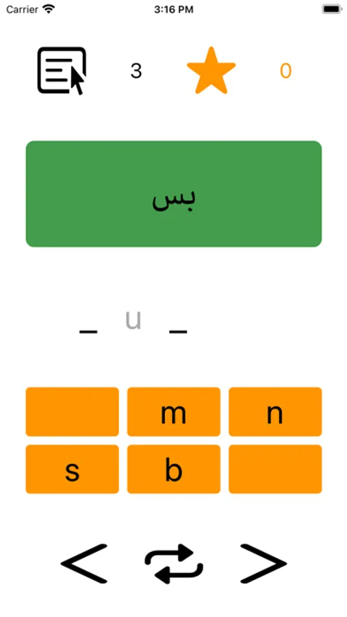 People who speak Pashto often find the sounds of English short vowels (a, e, i, o, u) difficult to hear. To make spelling easier, the spelling games provide the correct vowels in the early games.