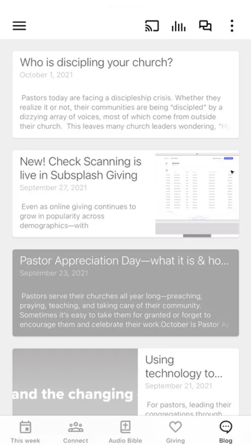 This app will help you stay connected with the day-to-day life of our church. With this app you can: watch or listen to past messages; stay up to date with push notifications; share your favorite messages via social media or email; and download messages for offline listening.