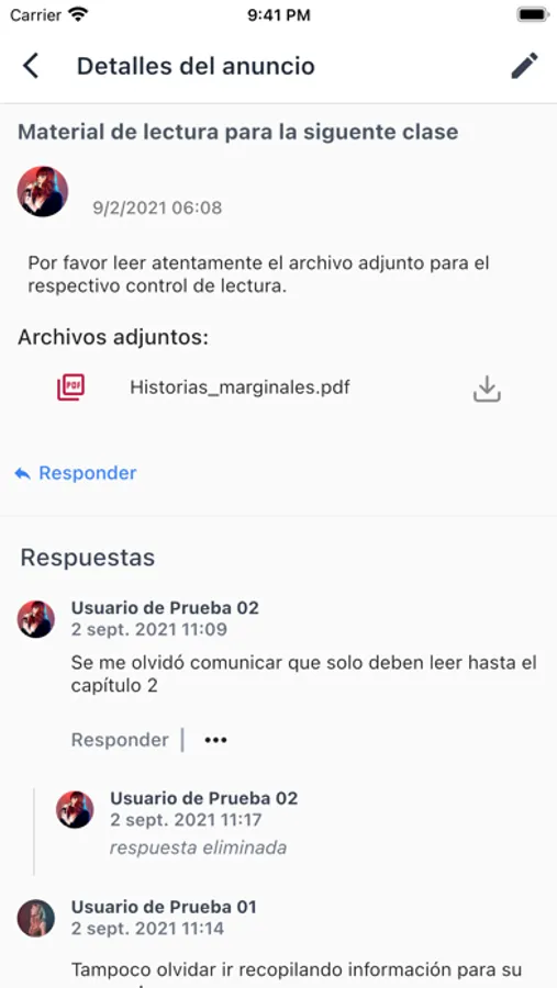 • COMUNICAR: Envíe anuncios y mensajes (incluido "Mensaje a los estudiantes que ...") y participe en las discusiones del curso desde la palma de su mano.