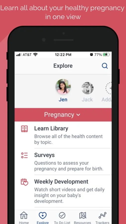 • Pregnancy trackers for baby’s kicks, your healthy weight gain and due date