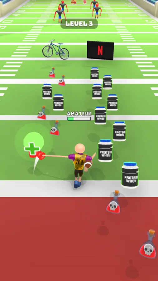 Get jacked up and knock 'em down. Collect proteins on the way to get bigger and don't stop until the finish line.
