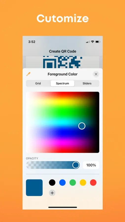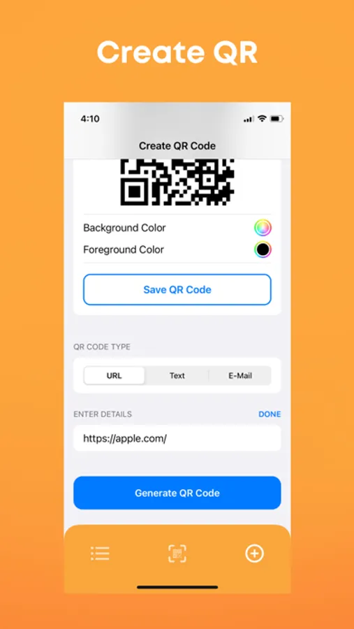 The app allows users to generate their own QR codes by inputting the information they want to encode, such as a website URL or a phone number. Users can also customize the appearance of the QR code by selecting different colors and more. This feature allows users to create QR codes that match their brand or personal style.