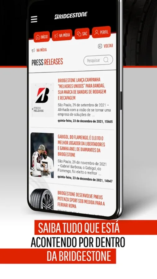 Bridgestone App é o aplicativo de Comunicação para interessados e colaboradores incluindo notícias, novidades, produtos e imagens de forma personalizada.