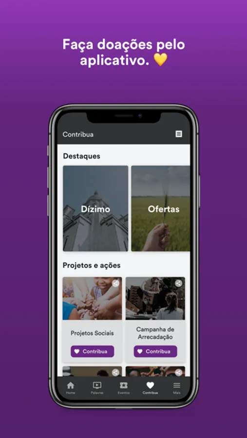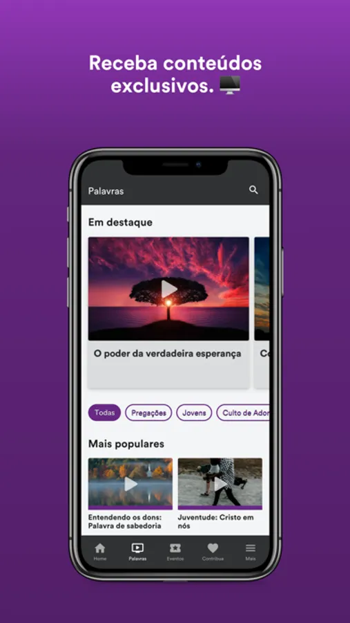- Siga a agenda e fique por dentro de tudo que acontece na igreja, inscreva-se em eventos e tenha seus ingressos sempre com você.
