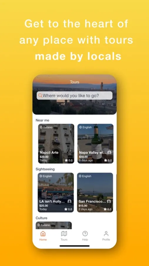If you are a guide or an experience creator, use the app to create unique content and publish it on our marketplace, accessible directly from within the app.