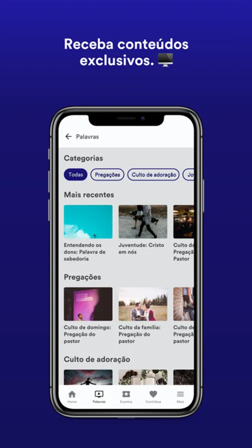 - Siga a agenda e fique por dentro de tudo que acontece na igreja, inscreva-se em eventos e tenha seus ingressos sempre com você.