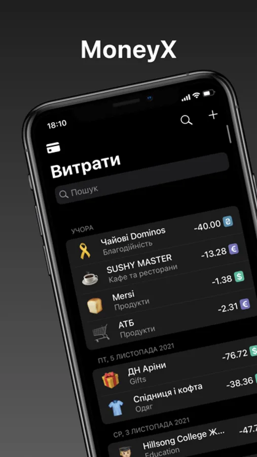 MoneyX - дуже простий додаток, який ставить за мету максимально автоматизувати для Вас процес контролю витрат й їх аналіз.