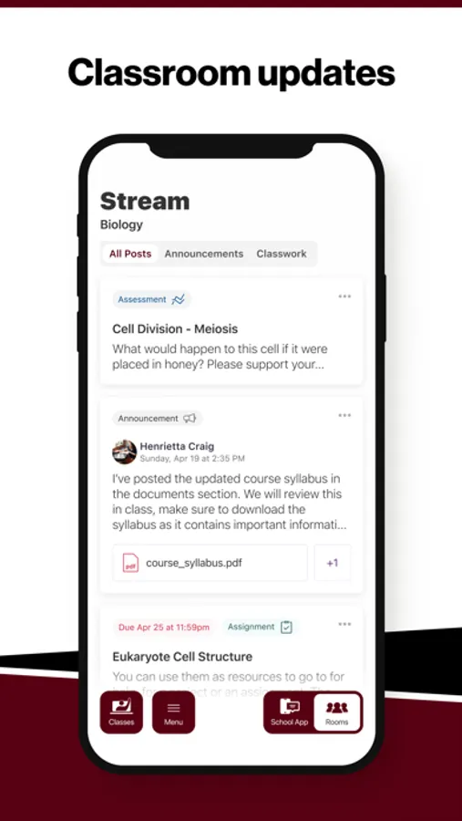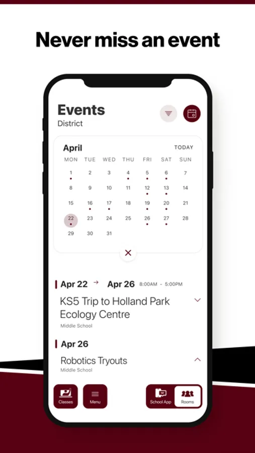 Select your student’s organization within the app and make sure you never miss a message.