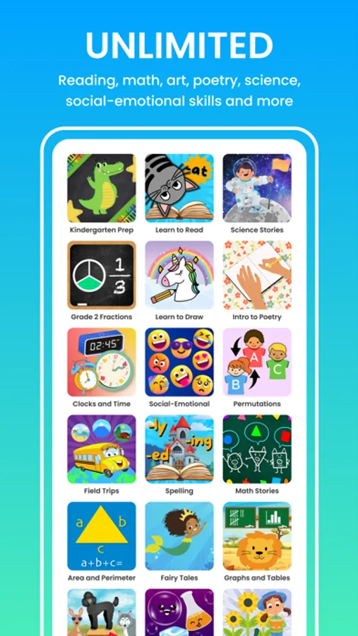 Unlimited private lessons in reading, math, art, poetry, science, geography, social-emotional learning and more.
