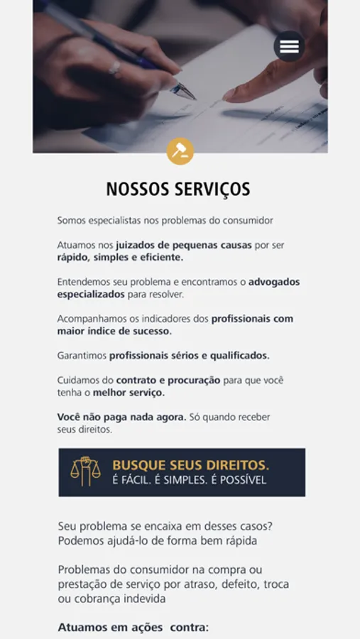 Você não pagará nada agora, mas somente quando receber seus direitos.