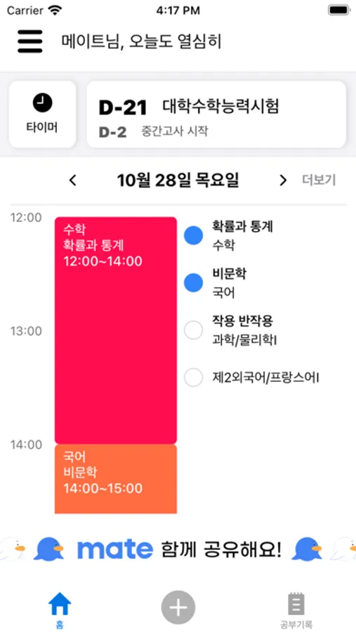 ● 수능모드를 이용하여 수능 시간표대로 공부하세요