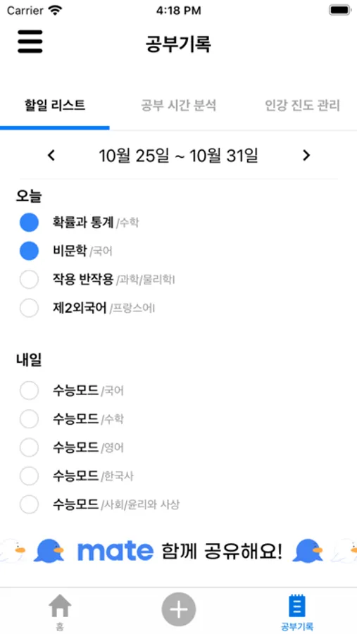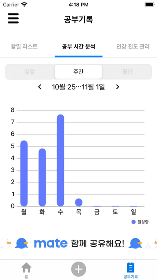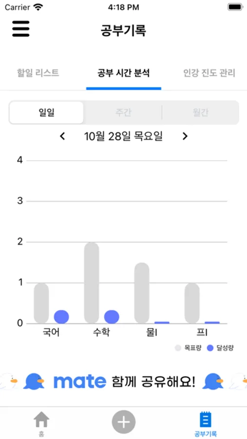 ● 공부시간분석으로 일일, 주간, 월간 학습 패턴을 돌이켜보세요