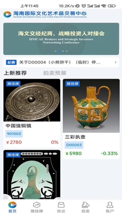 海文交APP是一个服务于全球文化艺术品爱好者、收藏家、投资机构的手机移动端应用。通过充分利用海文交的平台优势,并结合线上线下一体化的运营方式,主要以“摘挂牌”和“协议与拍卖”两种方式对文化艺术品进行交易。