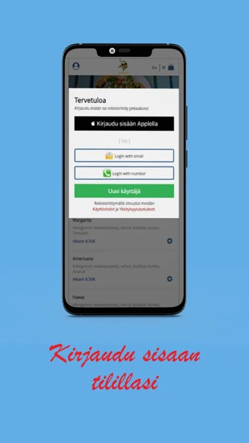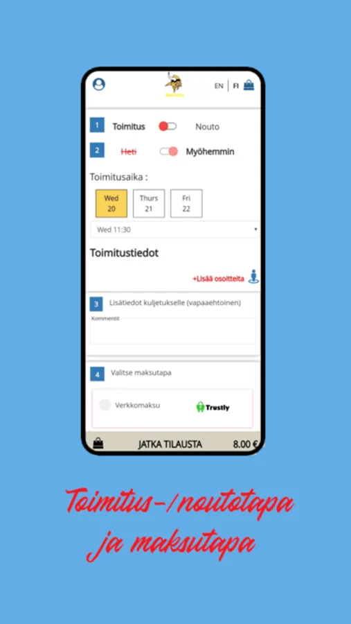 Sovelluksessa sinulla on mahdollisuus valita erilaiset maksutavat. Meillä on käytössä: