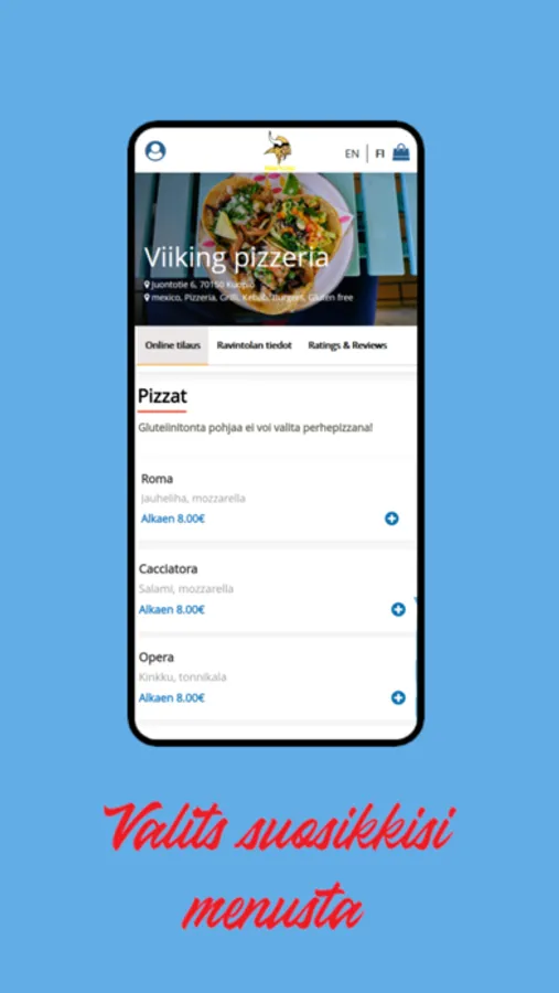 Viiking Pizzeria, sovelluksesta löydät kaikki ravintolan valikoimat edullisesti ja parhain tarjouksin! Voit tilata ennakkoon, noutaa ravintolasta tai nauttia kotona. Sovelluksen avulla apu löytyy parhaiten jokaiseen tilanteeseen.