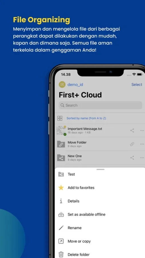 First+ Cloud is a Cloud Storage service from First Media. Save file smarter, get it faster. No more need to store files on physical devices that are easily damaged and lost. With First+ Cloud, saving and managing Folders, Photos, Videos, Documents, Recordings and various other file types can be done conveniently, safely and easily.