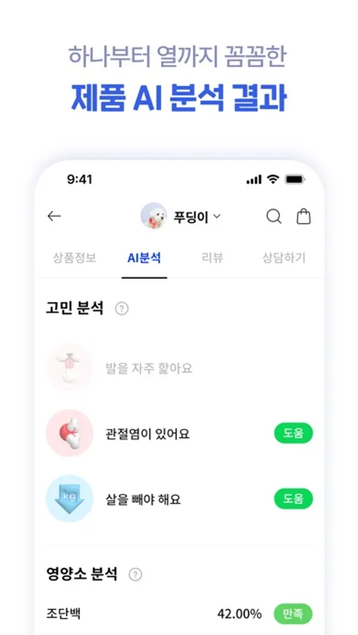 펫스널에 맞게 인공지능 기술로 사료 추천부터 맞춤 건강관리까지 완벽하게 푸드 앱 하나로 끝내세요.