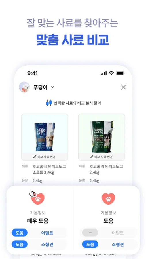 - 사료, 간식, 영양제 눈 대중으로 대충 줬다구요? 그래서 비만이 되어 고민이라면, 내 반려동물에 맞는 급여량을 확인하고, 내 반려동물을 위해 올바른 급여를 시작하세요.