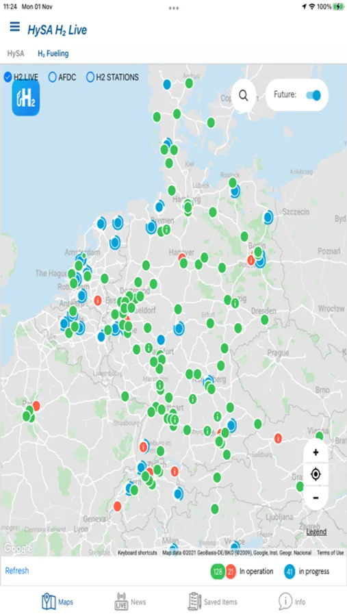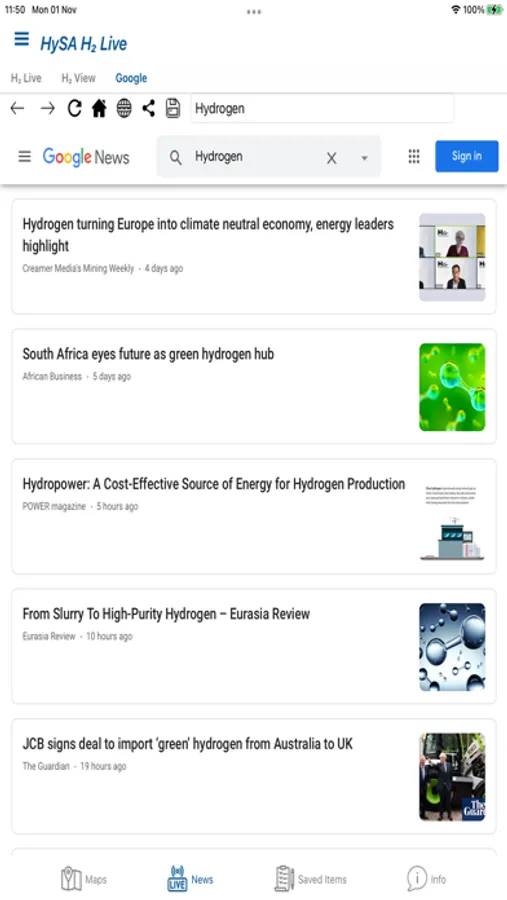HySA H2 Live is an exciting new mobile application aiming at providing real-time updates on African renewable H2 generation and storage installations as well as related infrastructure and brought to you by HySA Infrastructure Center at NWU. Information regarding current and upcoming global hydrogen fueling stations can be viewed on a world map through various linked recourses. In addition, a user is able to view, store, and share current news and events relating to new hydrogen developments across the globe. Hydrogen research centers and commercial entities across Africa are encouraged to contact HySA Infrastructure in order to share information regarding their installations on the App. The current version captures only a few installations in South Africa. We will be updating the App on a regular basis.