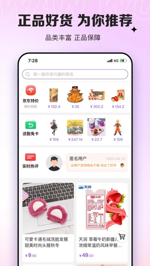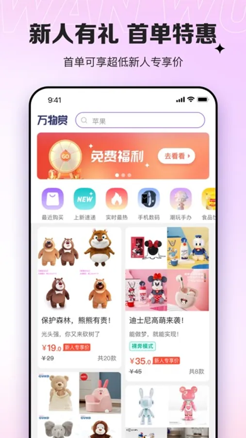 快乐购物,偶有惊喜。新人权益丰富,道具卡每周免费领取,众多免费福利等你参与,请升级至最新APP获取所有福利。