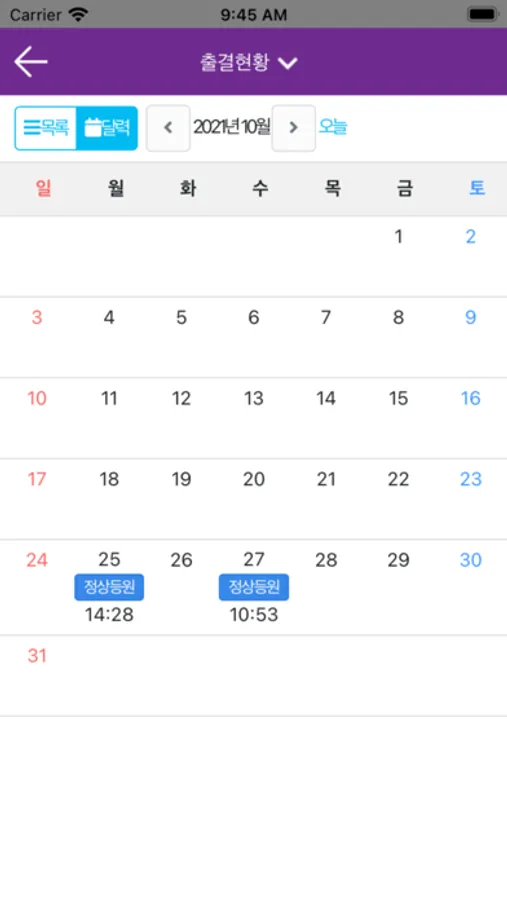 - 캘린더로 출결현황을 관리 할 수 있고, 원생의 등원/하원 처리가 가능합니다.